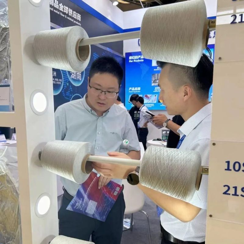 惠同新材料(E3E49)带来了全系金属纤维及制品一系列解决方案。展会现场精彩纷呈,热闹非凡,展现出了金属纤维及制品行业的蓬勃面貌。惠同新材通过产品展示、互动等丰富多彩的展现形式吸引参展观众留驻展台,进行深度洽谈,共谋金属纤维行业发展新机遇。